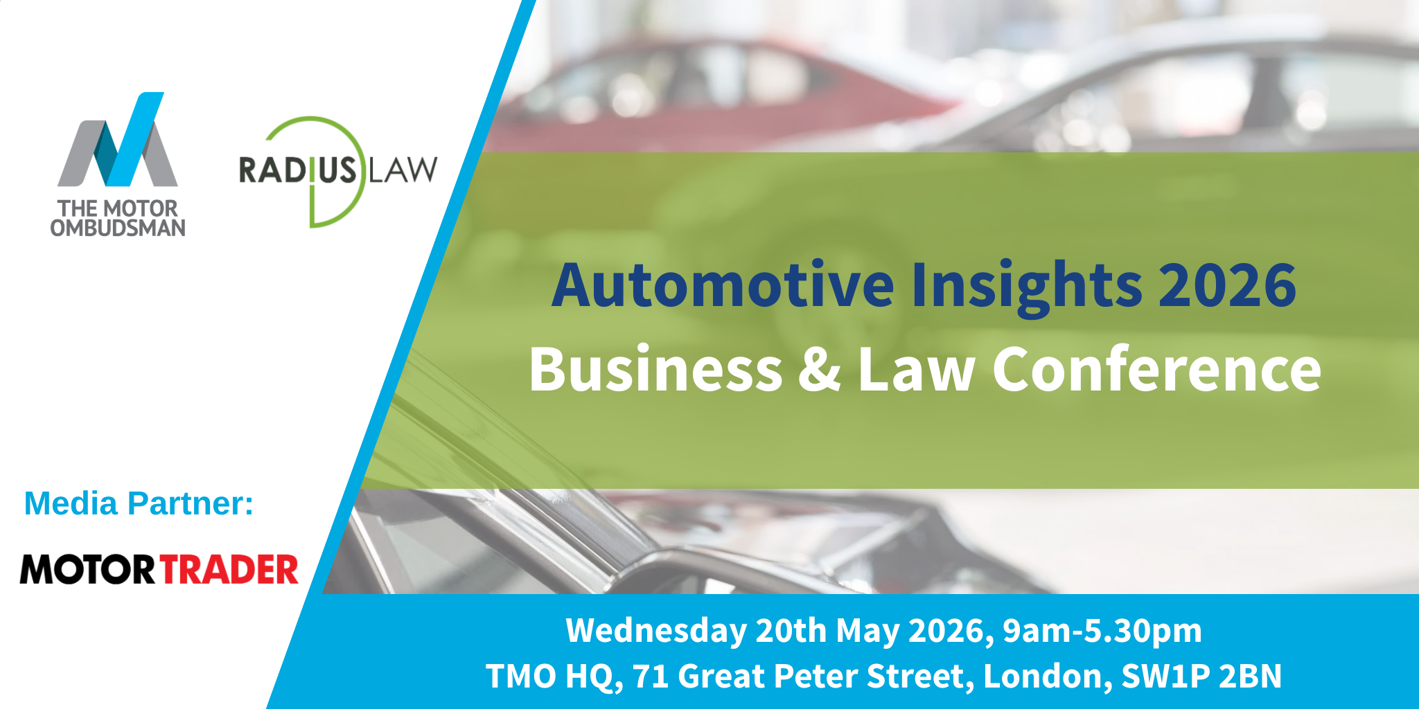The Motor Ombudsman and Radius Law, the provider of legal services to the motor industry, are coming together to host their 5th Automotive Insights – Business & Law Conference, on Wednesday 20th May 2026.