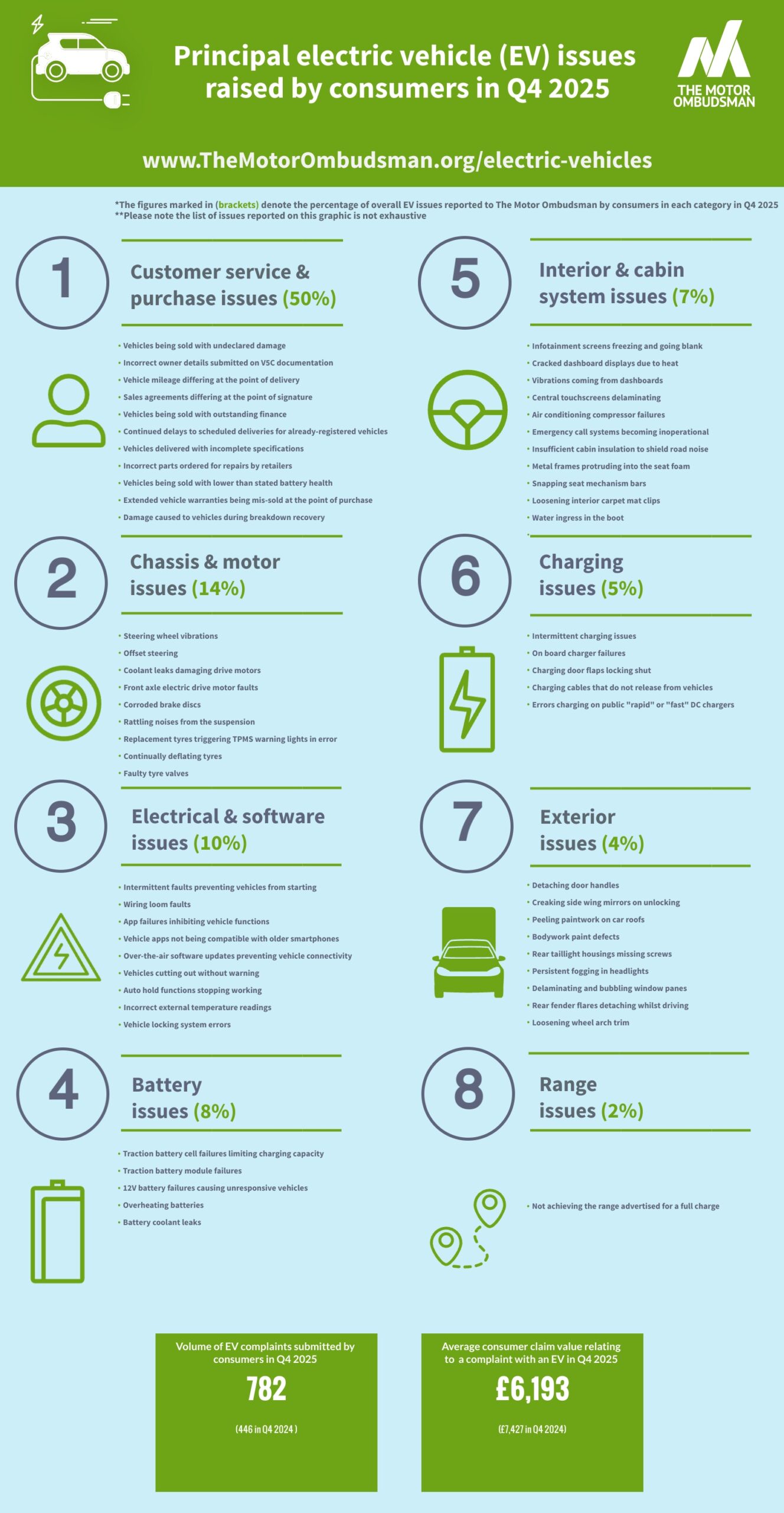 When looking at the main issues encountered by consumers with an EV during the final quarter of 2025, they are as follows:
