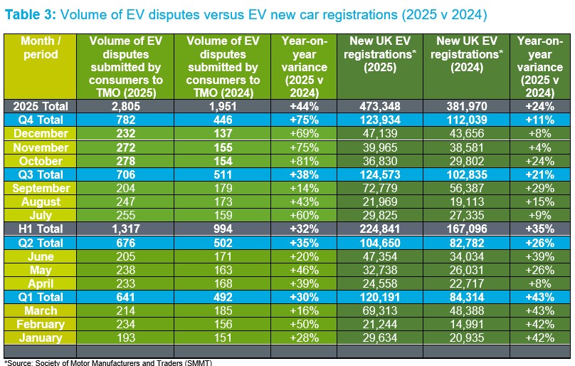 EV disputes brought by consumers to The Motor Ombudsman in Q4 2025 / FY 2025